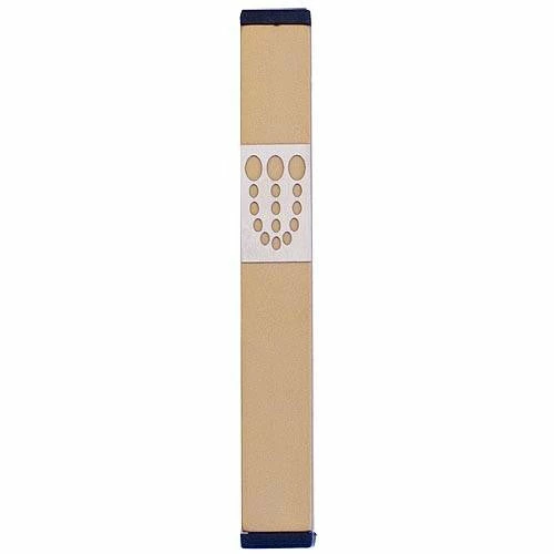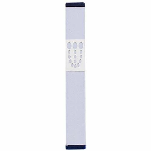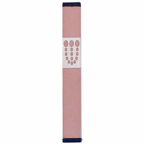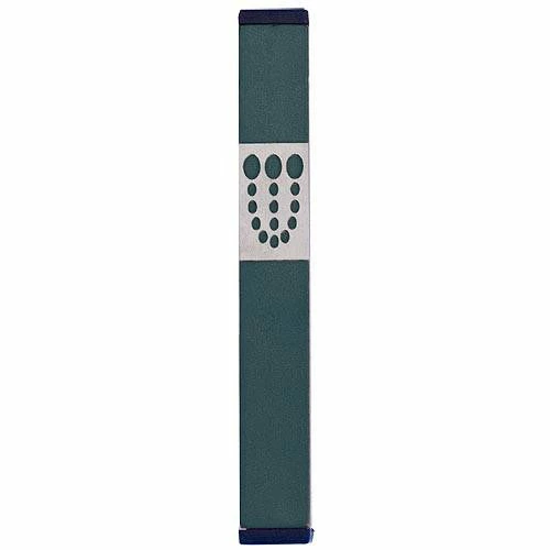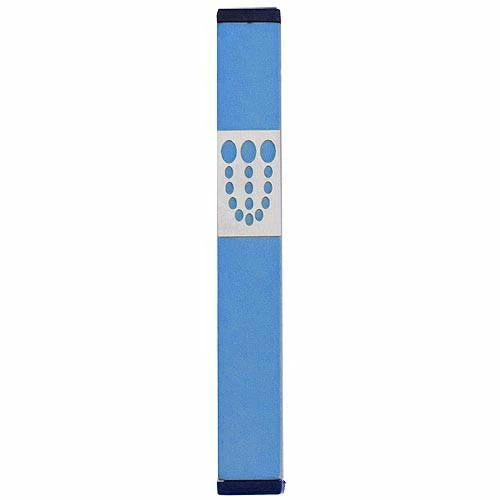 DOTS SHIN MEZUZAH. A stylized symmetric SHIN, created in charming bubbly DOTS, gives this mezuzah case a smiling, friendly personality. This design complements many styles of furnishing including contemporary, trendy, artistic, playful and fun. A great choice as a stand-alone piece; or an excellent solution for a consistent look throughout a home or place of work. The subtle, matt finish is available in ten different colors and four sizes, to provide flexibility for different rooms and doorways.
