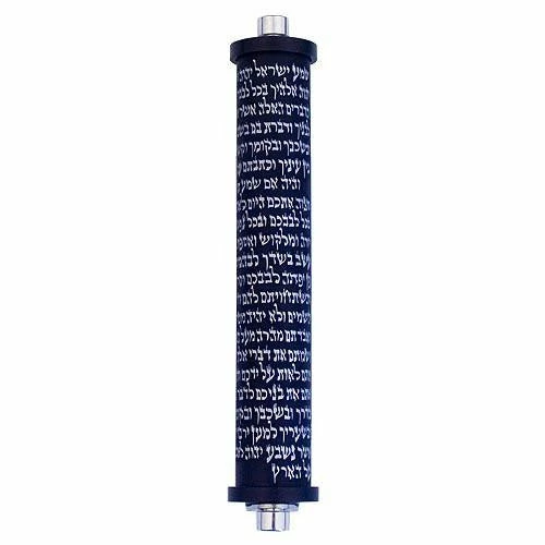 Taking after the model of the scroll Mezuzah, this design is both traditional, educational and uplifting. It shows, to anyone coming to your house the “Shema Israel” chapter, making the Mezuzah’s guarding presence ever more visible and present.
