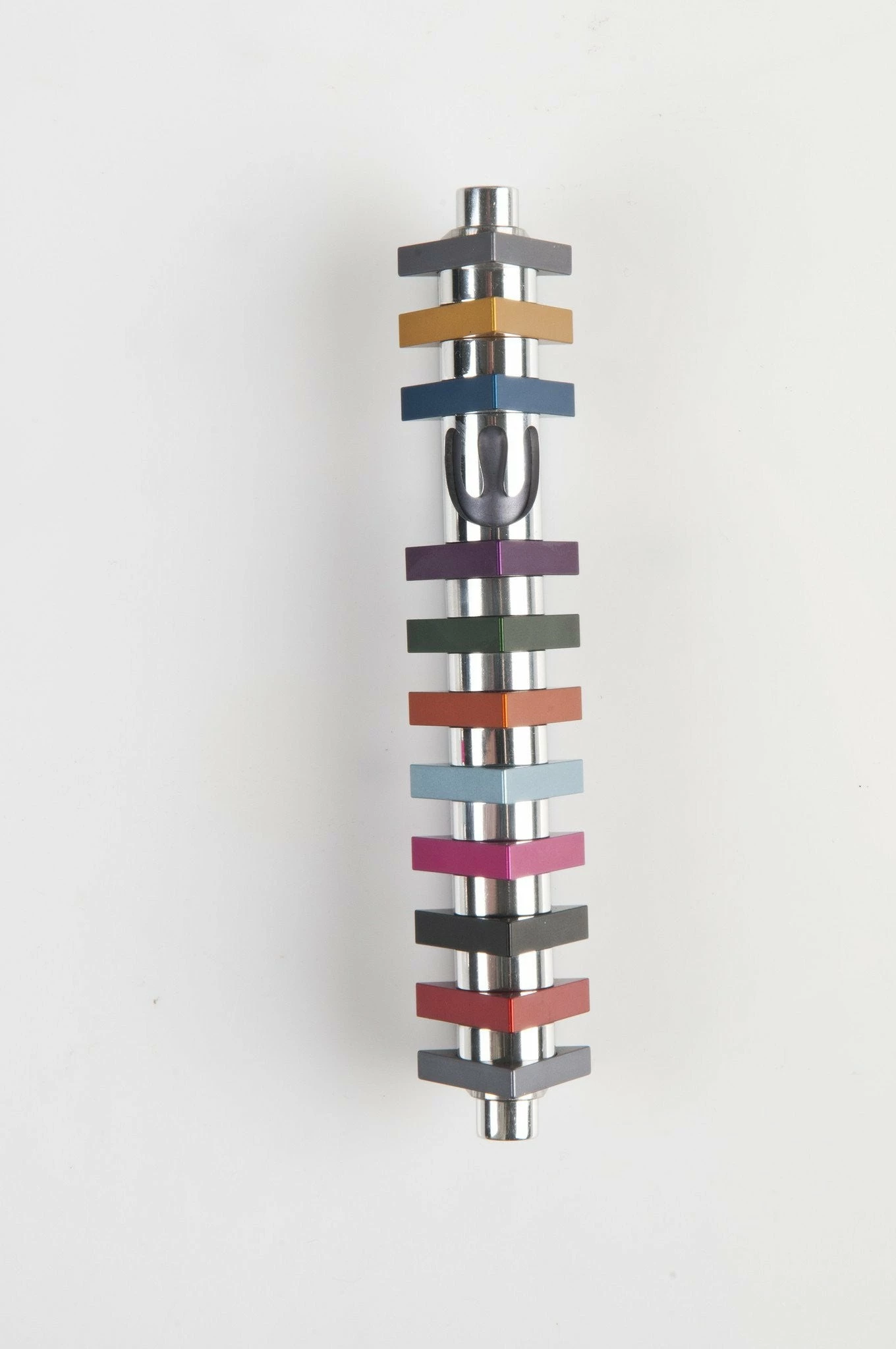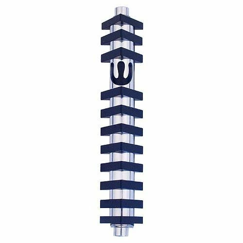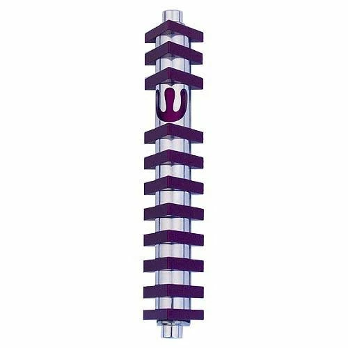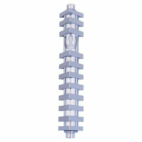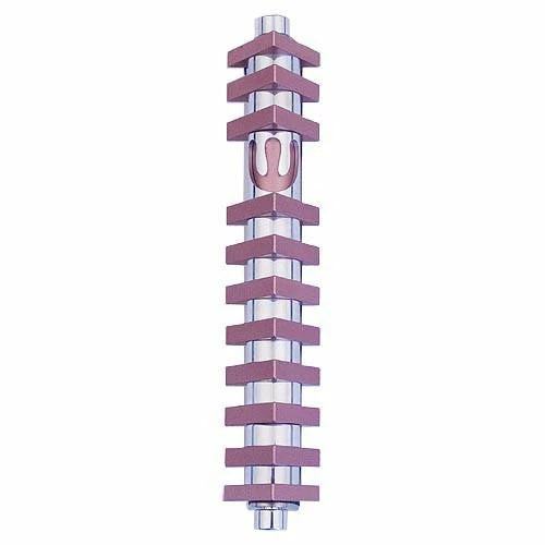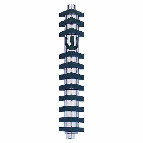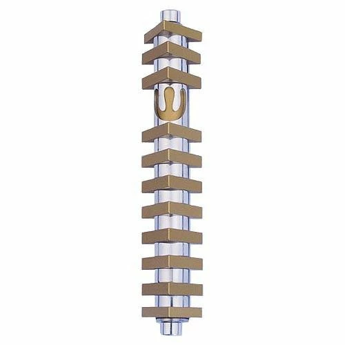 Style and tradition are combines in this Mezuzah, with its cylindrical shape that to mind the form of the parchment scrolls inside it. The knobs on both ends, its metallic design and the circles adorning it enhance its appearance as a Megillah cover (Bet Megillah).