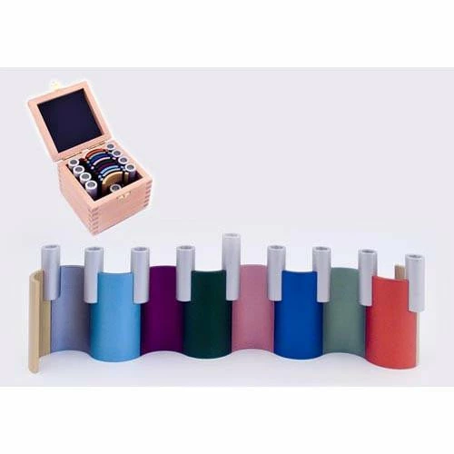 WALL DESIGN CHANUKAH MENORAH. This flowing inter-locking WALL Menorah is yours to shape and change. Created out of colorful, organically curved pieces that connect together with silver candleholders, the Wall is a prize piece. The unusual design and flawless, smooth fabrication make this menorah a unique conversation piece that will enhance any Judaica collection. Comes in a handsome storage box.