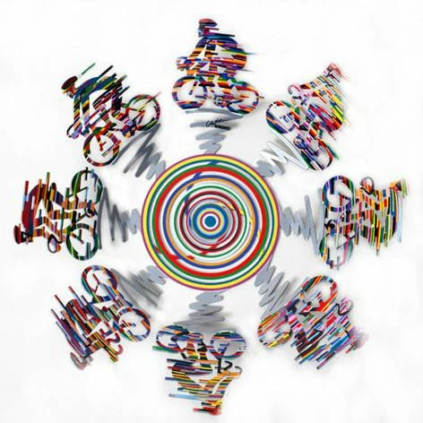 An addition to Israeli artist David Gerstein’s “Riders” series that is created through the unique process of serigraphy on laser cut steel. The result is a special piece of art that is colorful, whimsical and contemporary.