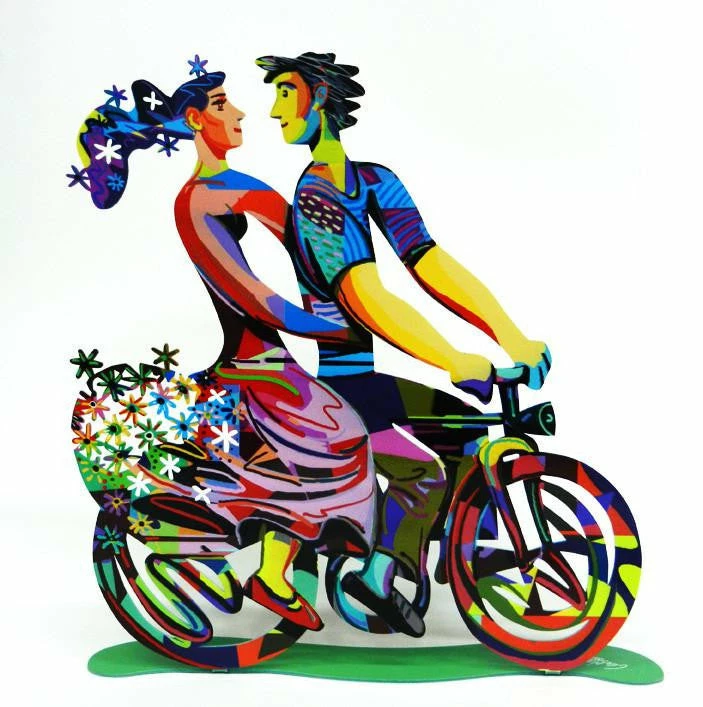 Israeli artist David Gerstein’s “Riders” sculptures are created through the unique process of serigraphy on laser cut steel. The result is a special piece of art that is colorful, whimsical and contemporary. Each piece is double sided for maximum beauty from all angles.