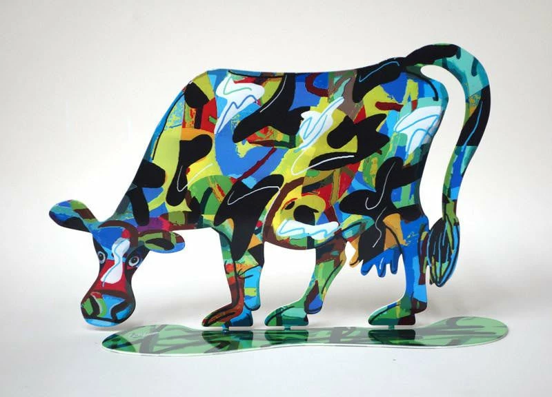 Israeli artist​ ​David Gerstein’s ​”​Cows​”​ ​s​eries​ ​is created through the unique process of serigraphy on laser cut steel. The result is a special piece of art that is colorful, whimsical and contemporary. Each piece is double sided for maximum beauty from all angles.Â