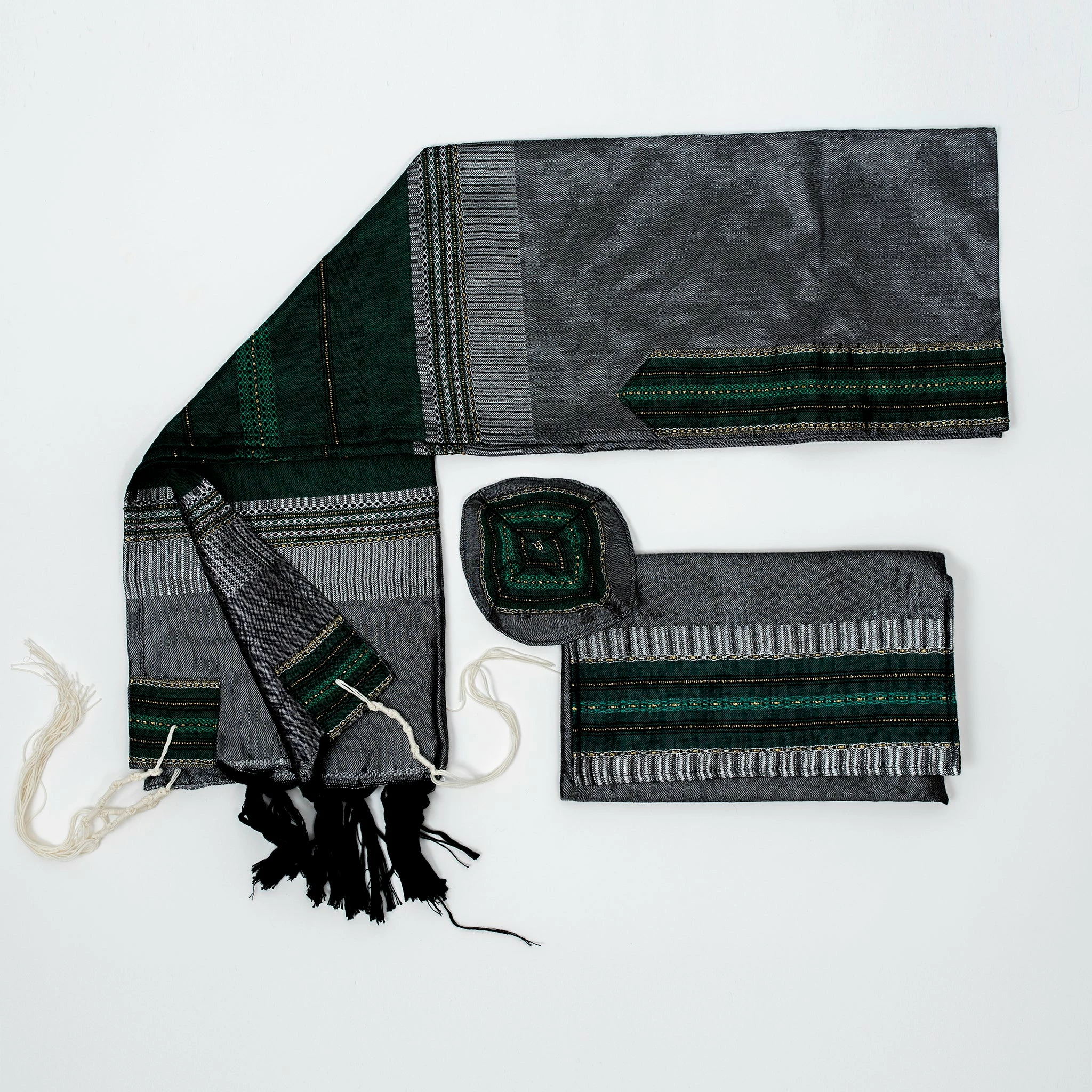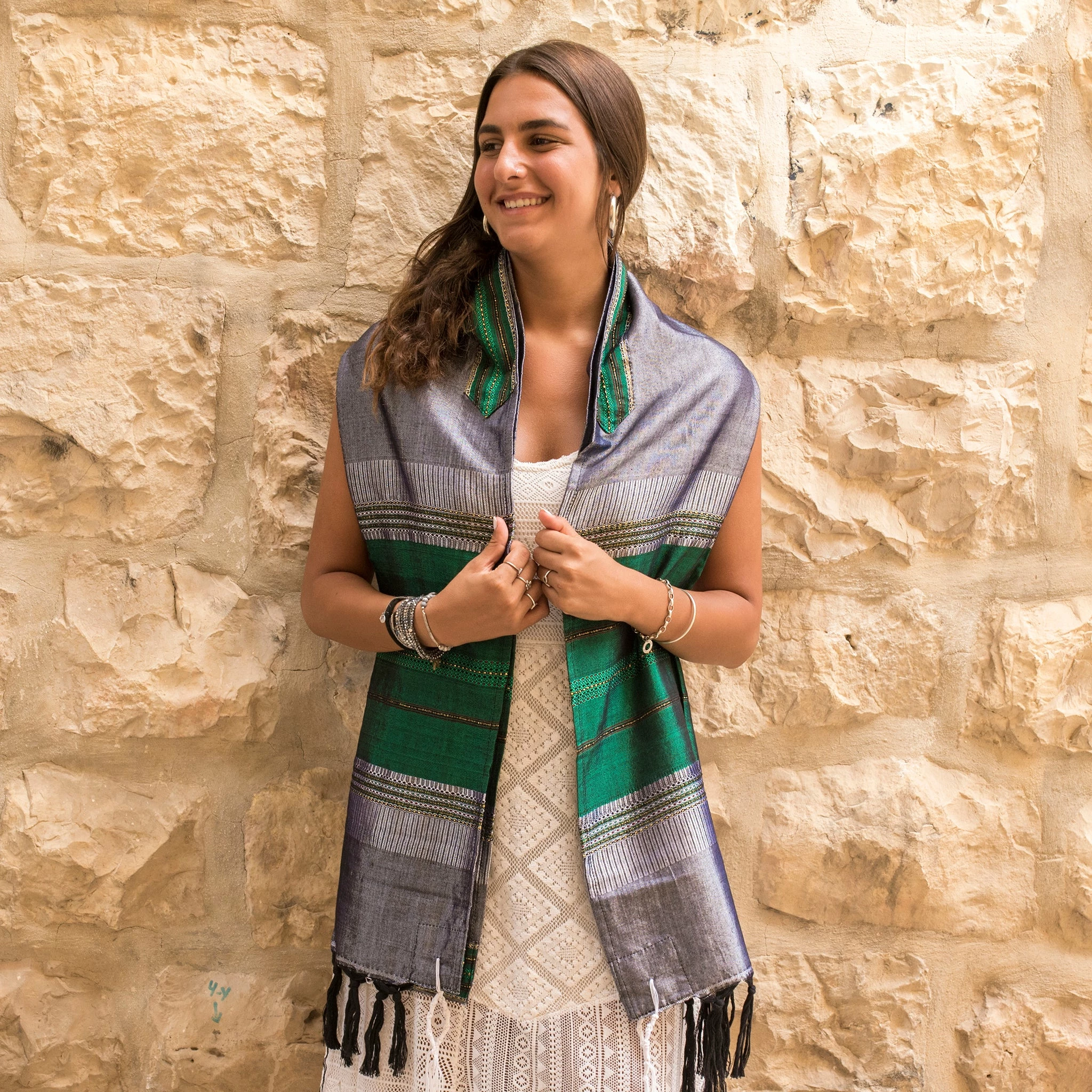 Gabrieli tallits are hand woven in our studio in Israel by our experienced tapestry artisans. We use the finest materials to ensure a finished product of the highest standard. All Gabrieli tallits are sold as a set that includes a matching kippah and tallit bag along with the tallit itself.