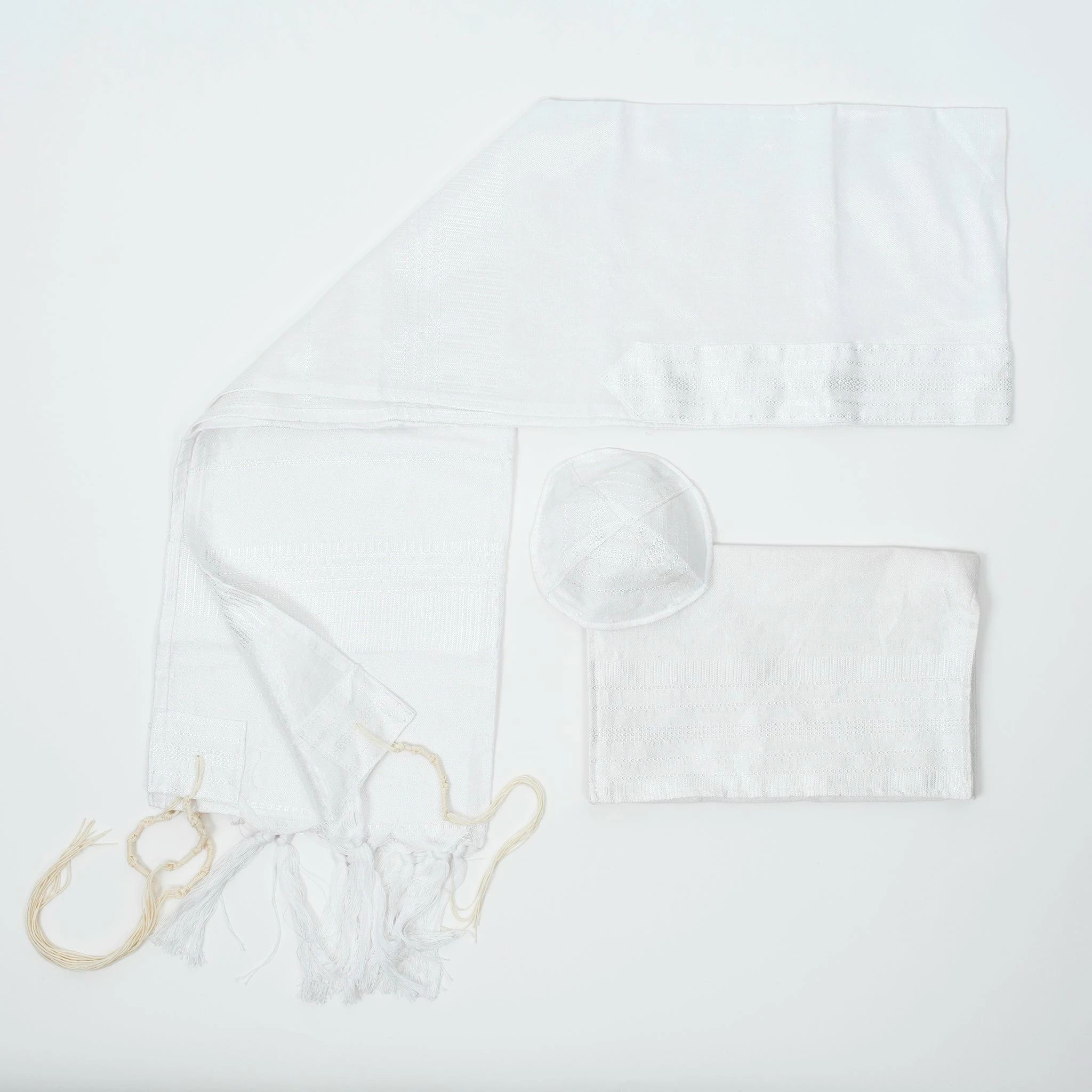 Gabrieli tallits are hand woven in our studio in Israel by our experienced tapestry artisans. We use the finest materials to ensure a finished product of the highest standard. All Gabrieli tallits are sold as a set that includes a matching kippah and tallit bag along with the tallit itself.