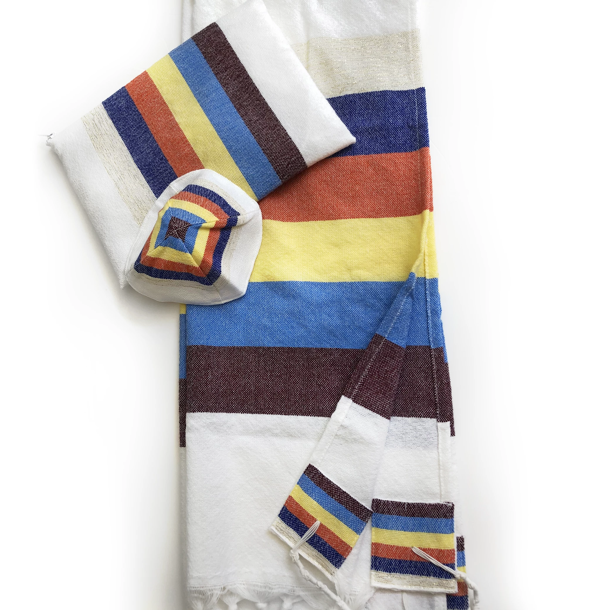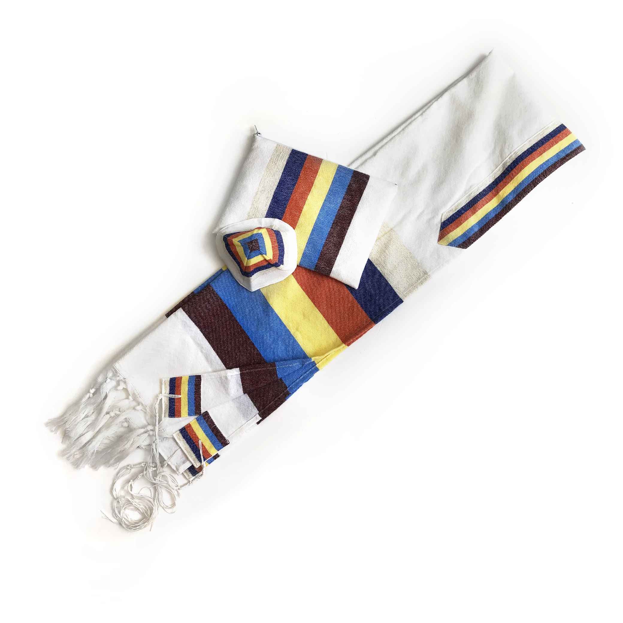 Gabrieli tallits are hand woven in our studio in Israel by our experienced tapestry artisans. We use the finest materials to ensure a finished product of the highest standard. All Gabrieli tallits are sold as a set that includes a matching kippah and tallit bag along with the tallit itself.
