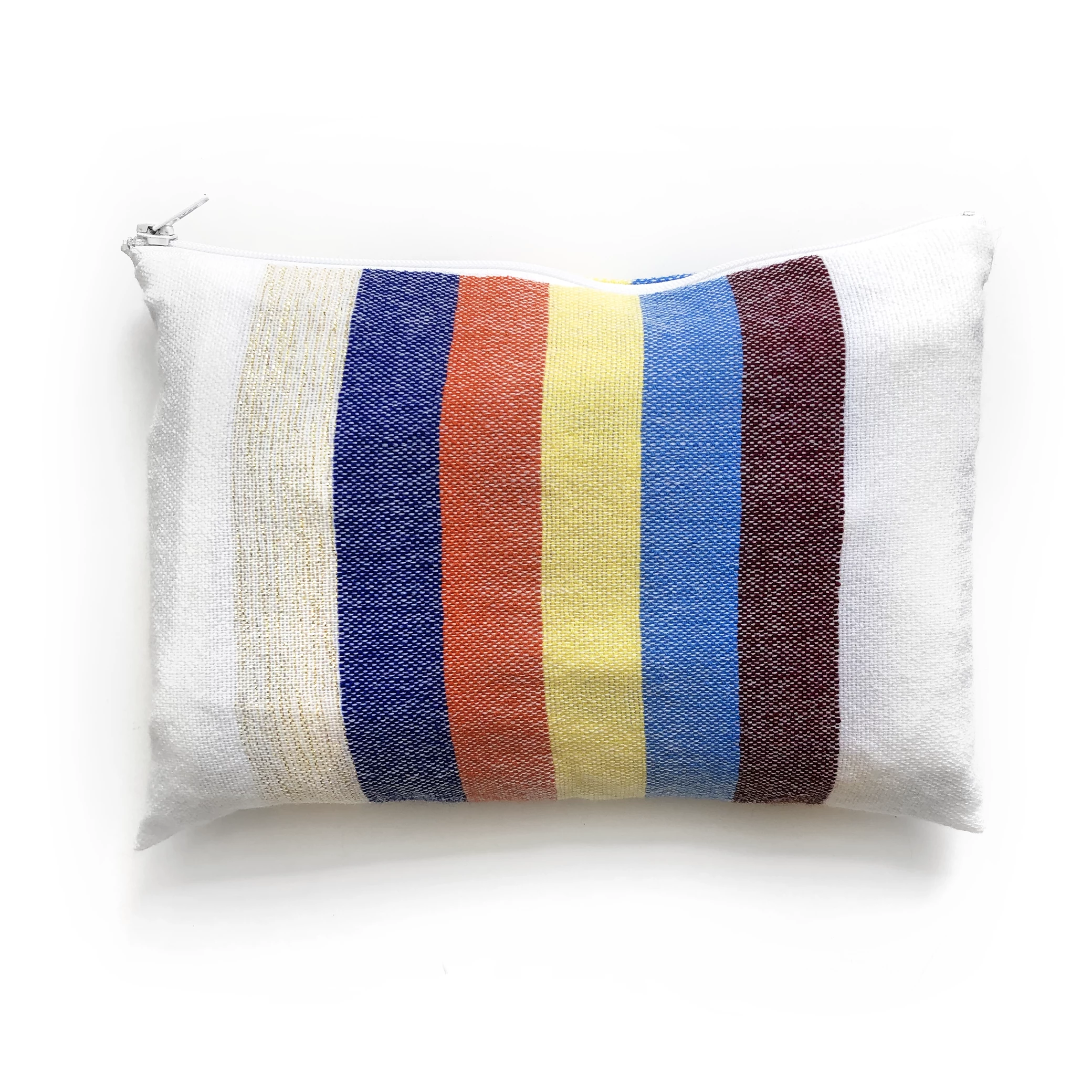 Colors: base in natural wool color with Bordeaux, Flag Blue, Yellow, Orange, Blue and gold design.
