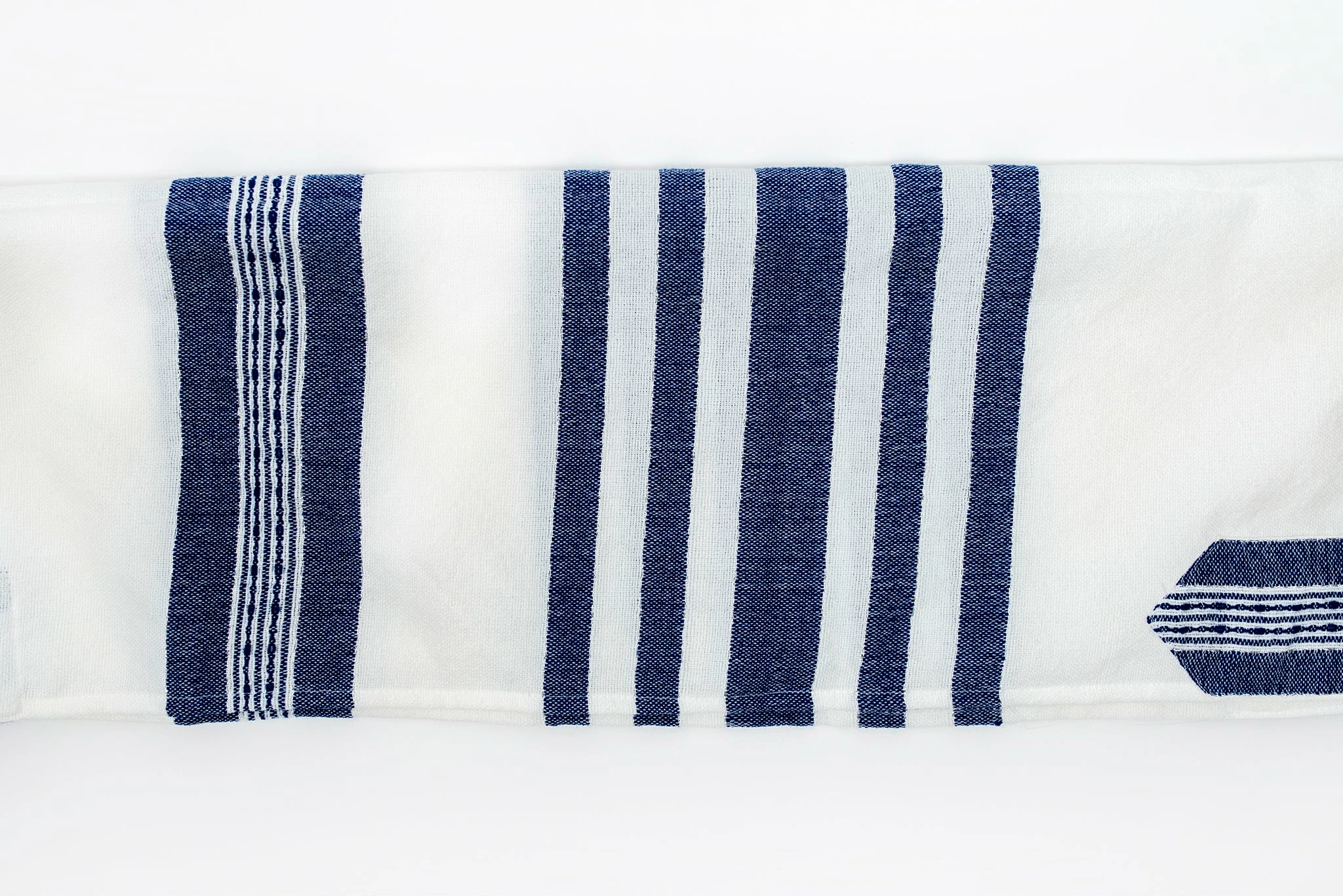 While ordering, choose to further customize your tallit by adding an atara, collar, with a hand embroidered blessing for donning the tallit and/or tzizit that include Ptil Tekhelet, blue strands.