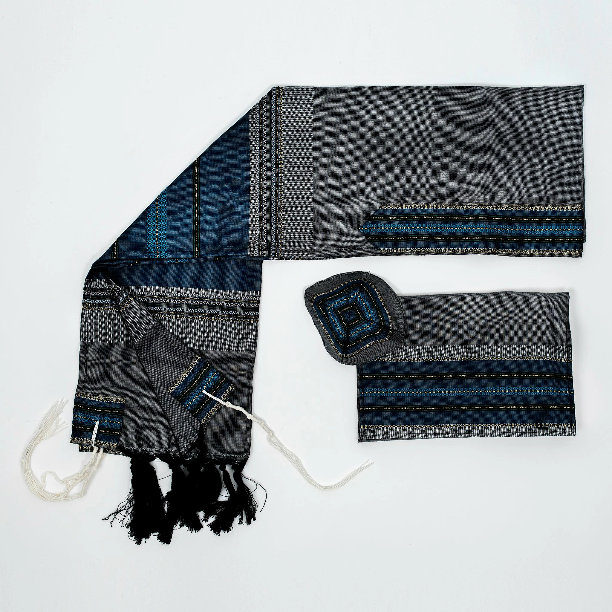 Gabrieli tallits are hand woven in our studio in Israel by our experienced tapestry artisans. We use the finest materials to ensure a finished product of the highest standard. All Gabrieli tallits are sold as a set that includes a matching kippah and tallit bag along with the tallit itself.