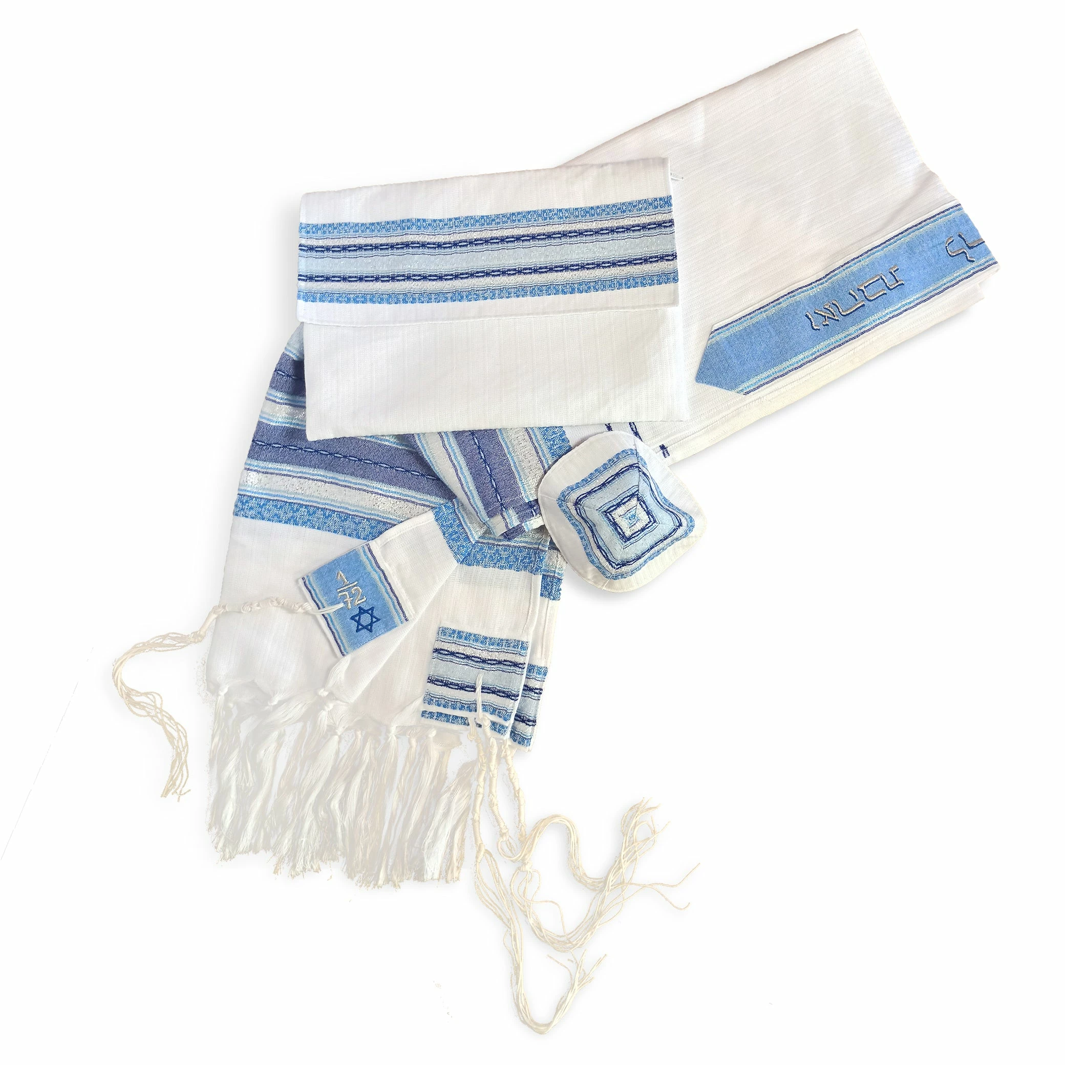 Like all of our tallit sets, includes a matching kippah and tallit bag.