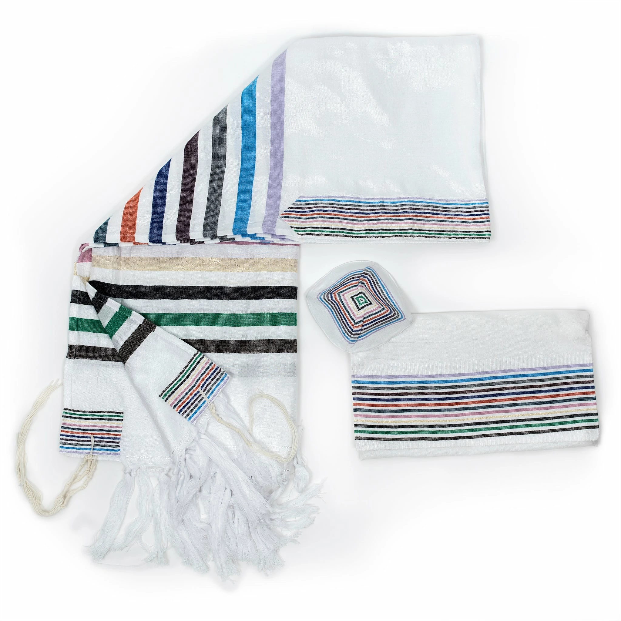 Colors: base in white with 12 colorful stripes Like the 12 Israeli tribes. Colors: Lavender, Israeli blue, green, brown, blue, orange, light blue, pink, gold, black, green and grey.