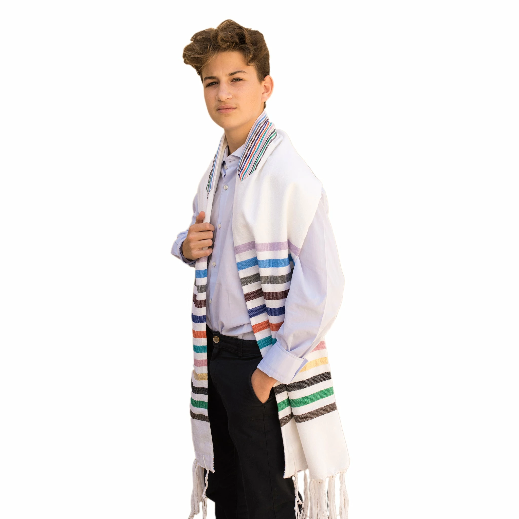 Colors: base in natural wool with 12 colorful stripes Like the 12 Israeli tribes. Colors: Lavender, Israeli blue, green, brown, blue, orange, light blue, pink, gold, black, green and grey.