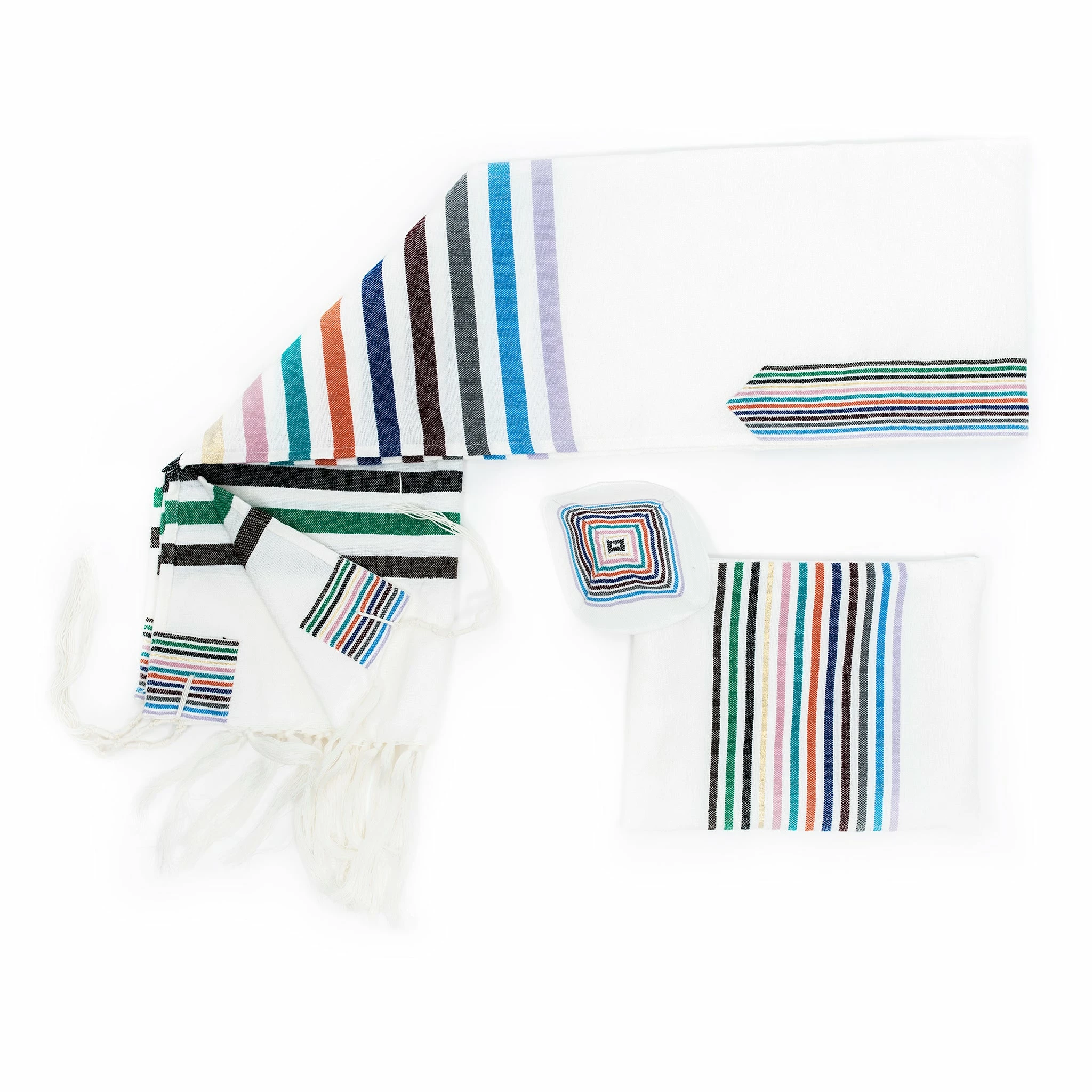 Gabrieli tallits are hand woven in our studio in Israel by our experienced tapestry artisans. We use the finest materials to ensure a finished product of the highest standard. All Gabrieli tallits are sold as a set that includes a matching kippah and tallit bag along with the tallit itself.