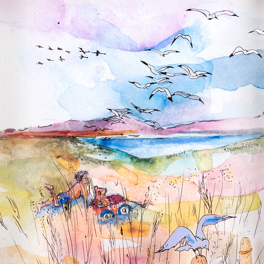 Take a break from the business of life and spend some time with a close friend (or teddy bear) to watch the sky and the sea. Bring a taste of that wide open feeling into your home and your heart with this 3D painting on glass.
